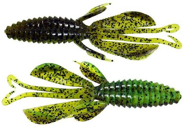 Reaction Innovations new Kinky Beaver is similar to the Sweet Beaver. They have the same body and the same standard arms. The Kinky Beaver has added a set of claw like arms with flared edges, that are made to give a flapping motion. They have also added two antennas with curled tips in between the two new claws to add more action. This bait is great for flipping and pitching. It can be fished alone or even on the back of a jig. It’s 5 inches in length and comes 7 per pack.