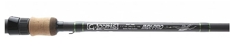 Blending hi-tech materials with innovative design, the G. Loomis IMX Pro Jig and Worm Casting Rods have achieved the impossible by creating a lighter version of the already airy IMX Series. Constructed using an entirely new, high-modulus, high-performance material, the G. Loomis IMX Pro Jig and Worm Casting Rods utilize strategic scrim placement to provide anglers with a exacting tapers and the proper flex for specific techniques.Â