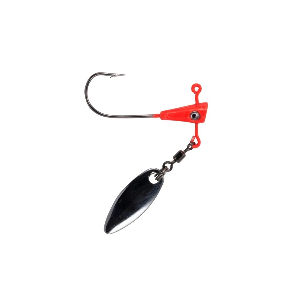 The Fin Spin blade will spin on the retrieve or the fall. It unique Shad dart shape creates a unique look and action. Just add a Crappie Magnet body or any solid jig body to add realistic action. The Double Cross barbs will hold onto any jig body longer than any other jig spinner combo. You can cast or troll the Fin Spin.