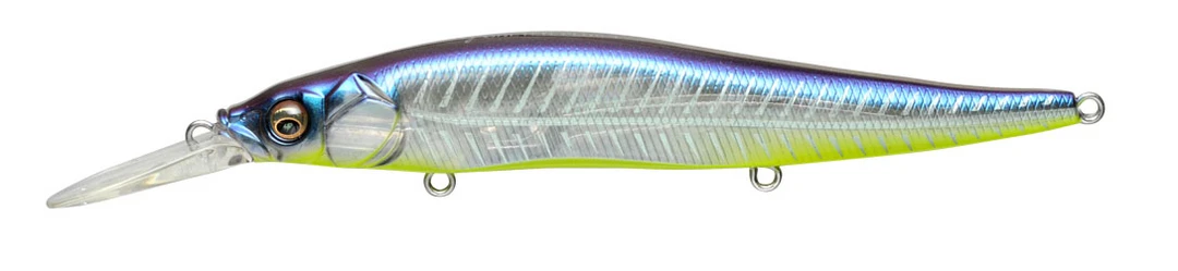 Megabass VISION ONETEN+1 is a mid-range jerkbait designed to increase the depth of the original VISION ONETEN by up to 3ft. The VISION ONETEN+1’s bill is crafted to eliminate the traditional issues of high water-resistance, fatigue, and deadened darting-action often associated with long-bill minnows, while at the same time preserving the legendary action of the original VISION ONETEN. By positioning the line-eye close to the body, water resistance is reduced in order to make it easier to work the VISION ONETEN+1.