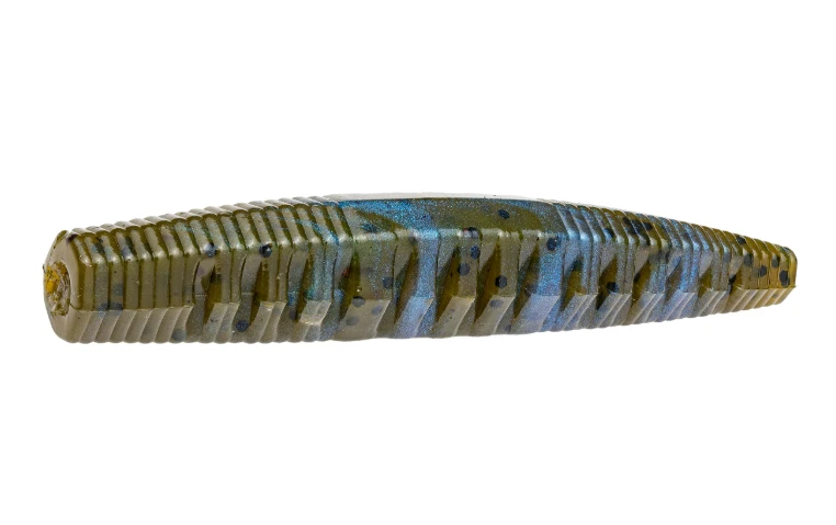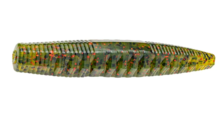 The Strike King Ned Ocho comes with notched channels on its sides, designed to give the bait a lifelike, quivering action that will release bubbles as the bait is pulled through the water. The Ned Ocho was also designed so that it wouldstrand up when dragged across the bottom on a jig head, a very necessary component to the Ned Rig technique.