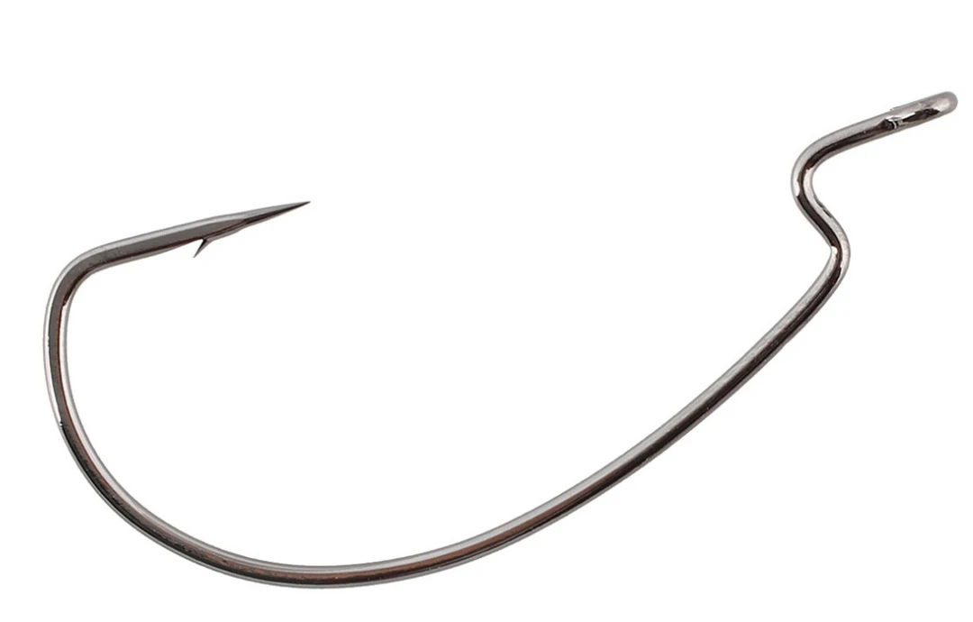 Sometimes the plastic baits we use are just too thick and heavy to rig on a standard worm hook, so Gamakatsu created their Extra Wide Gap hooks. With a regular Texas-rig, the point of the hook is pushed through the entire cross section of the bait and when a bass bites the lure, the plastic bait is pushed down exposing the point. If the plastic is too thick, not enough of the hook pushes through and the point cannot connect deep in the fish’s mouth and you will either miss the fish completely or not hook it deeply and lose it on the first good run. If you find this happening to you when you fish big plastics, try the Extra Wide Gap hooks from Gamakatsu. Try them with big creature baits, big Senkos, and those over sized worms with thick bodies. Gamakatsu makes these hooks with the point in line with the eye of the hook so when you set the hook, all the force goes to the point to drive it through your plastic bait and into a hard, bony mouth. These are probably the best selling bass worm hooks in the known world!