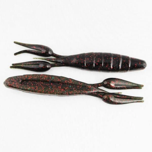We all love the flipping tube but hate the lost fish. Now the Missile Craw solves that problem. The 4” crawfish shaped bait has a big hook slot all the way down the belly for piercing hook sets. The solid head design has a slim profile but still has a little bulk, which makes it skip very well. The bait was designed to be a slimmer flipping presentation but has other uses including on a shaky head, Carolina rig, and jig trailer. 8 per pack