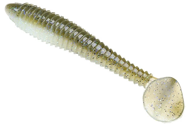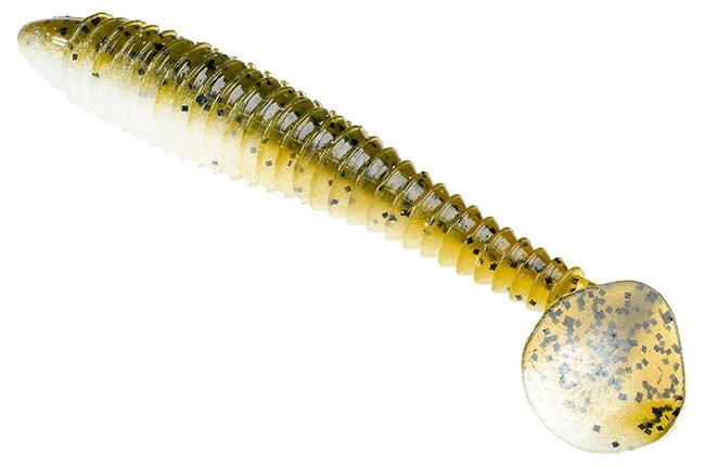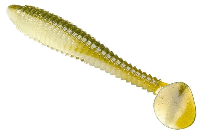 The new Strike King Rage Swimmer is a soft plastic ribbed ring tail swimbait that displays a wide tail kicking action which mimics a wide spectrum of forage species. Well, we’ve definitely seen this design before with other swimbaits, but that said, it’s proven and the other brands who make this style can be difficult to get from time to time. So Strike King seized the opportunity and developed their own ribbed soft plastic swimbait. The innovative ribbed texture creates a body vibration which gives the bait a shimmy in addition to the standard tail kicking motion. Perhaps the best feature of the design is that the swimbait can be retrieved at all speeds; the Strike King Rage Swimmer definitely swims well.